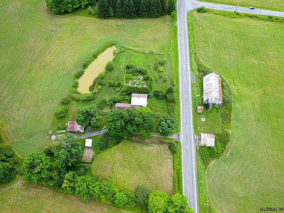 Unique opportunity to own your own slice of heaven! Over 17 acres of rolling hills, waterfalls, caves to explore, berry bushes, vegetable gardens, ponds and flower gardens...you will never be bored staying home when you live here!This home from the 1870's boasts many original details including blue stone floors, open beams, original plank floors, entry doors and woodwork. The charm and character can be felt throughout including the kitchen/sitting area with wood stove. Currently a four bedroom the second floor family room with fireplace could also be used as an additional bedroom. The lot across the road which is included in the sale has a hay barn and a garage. Roof and all of the outbuildings are being sold "as is".A little TLC and you will have a one of a kind retreat! 30 min to Albany.
