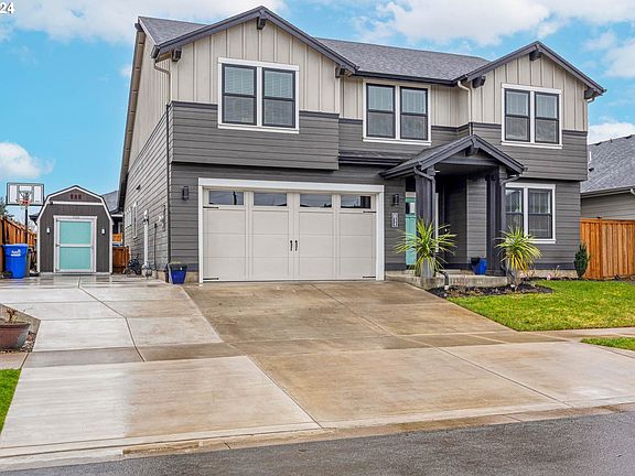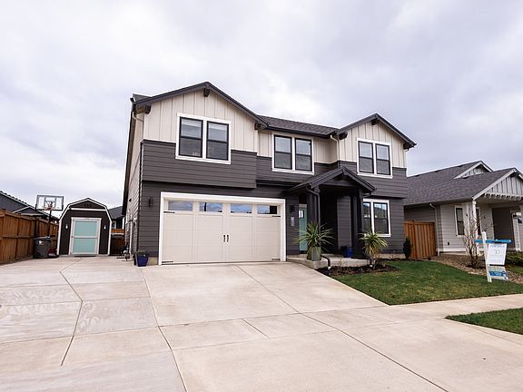 Stunning 2019 Simplicity by Hayden Homes-built residence featuring 4 bedrooms, a den/office with potential 5th bedroom, a loft, 2.5 bathrooms, and a spacious 2,580 square feet. The primary bedroom is conveniently located on the main level, complete with a walk-in closet and a generous bathroom suite featuring a soaking tub and separate shower. Enjoy the seamless flow of the open living room, kitchen, and dining areas adorned with engineered hardwood floors and high ceilings. The kitchen boasts stainless steel appliances, Quartz countertops, a pantry, and a large eat bar. Stay warm and cozy by the gas fireplace in the living room. A slider from the dining area leads to the fenced back yard with a covered patio, plumbed for a gas BBQ, and includes a large tool shed. Notably, this home offers RV and boat parking, adding practicality and versatility to its list of appealing features. Experience the perfect blend of style and functionality in this home.
