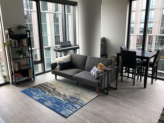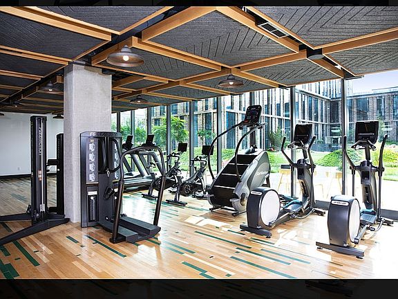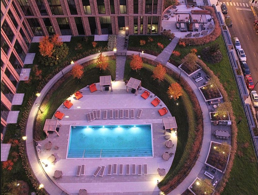 Building is brand new, built last year (porteapts.com) with top-end amenities: pool, two gyms, community events and workout classes, rooftop deck, rooftop garden, grills, working spaces, indoor dog area (and right next to dog park), fast internet, brand new smart appliances, in-unit laundry, doorman, smart package delivery system, bike room, QR code guest passes for elevators, and more.