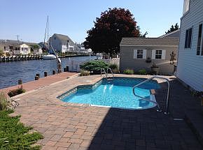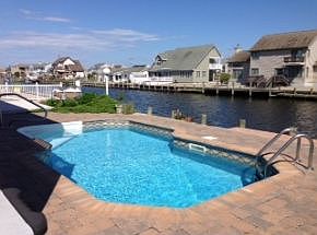 $25, 500 PRICE REDUCTION by motivated seller!! For this beautiful wellmaintained house with all the extras. Full SOLAR SYSTEM provides 80% electrical usage. New landscaping. 2 NEW AIR CONDITIONING UNITS with elevated platform. SALT WATER INGROUND SWIMMING POOL with new liner. 103.5 FEET OF WATERFRONT on deep water lagoon with 5 minutes to Barnegat Bay. 10 x 12 shed for storage. Outdoor shower stall. Large Tech-Deck patio. 103.5 Tech-Deck dock with one electric lift for jet ski and one davit for small boat or second jet ski. Paver two car driveway and pool deck. Beautiful hardwood flooring throughout first floor. 3 FULL BATHROOMS including one in each master bedroom. 5 BEDROOMS with one currently being used as an office. Large loft area currently serves as a family room. LIVING ROOM has gas ventless FIREPLACE. Upstairs MASTER BEDROOM has gas FIREPLACE, cathedral ceiling and large walk in closet. Master bathroom has JACUZZI TUB, walk in shower, two sinks with remote control skylight with rain sensor. Second master bedroom suite on first floor has own bath, walk in closet, linen closet and sliding door access to back yard patio. Two HVAC heating systems with high efficiency. Home was constructed with 2 x 8 studs by Baycorp Builders. New Electrolux front loading washer and dryer are included. Battery operated blinds in living room. 12 slider and 6 slider to back yard patio and pool deck from living and dining rooms. House is wired for cable and satelite services. High efficiency windows. 3 skylights in living room. Large two car garage with remote control door opener. 220 amp service with sub-panel. ALARM SYSTEM. If interested the furniture could be purchased.This home would be great for a family with children or for a family who likes to have their own privacy or a couple who desire company on the weekends. A unique home on a very desirable waterfront location. You have to see it! The home comes with a HOME PROTECTION PLAN.