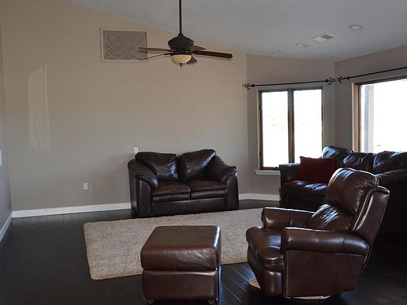 Beautiful home with spectacular panoramic mountain views, close to national forest. Open, spacious 2229 square foot 3 bedroom, 2 bath home with an attached 2 car garage. This home is move-in ready and has many upgrades to include travertine floors, upgraded cabinets and a tankless water heater. The master bathroom has a steam shower and a jacuzzi tub. The living room has gorgeous natural hardwood floors and a telluride stone quadrafire pellet stove. The large walk in closet in the master bedroom has custom closet shelving built in. The laundry room is very spacious and contains a sink and cabinets for storage. Paved roads lead to a large circular driveway with over 10,000 sq ft of concrete. Backyard is landscaped with grass and has a sprinkler system. Agent is related to seller.