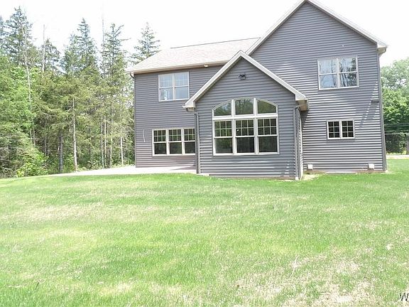 Magnificent just built colonial on 9-acre treed lot! Hickory hardwood floors on 1st floor, 2nd floor bdrm.& hallway. Glamour kitchen with quartz countertops, double ovens, under cabinet lights, 36" cooktop, large island w/ lighted quartz countertop, under counter microwave, backsplash, pantry w/frosted glass barn door. Family Rm. w/fireplace, wet bar w/ glass cabinets & beverage frig. Bright sunroom w/ circle top window w/ sliding door to 21x17 concrete patio. Anderson windows, plenty of recess lights, solid wood int. doors, many rooms pre-wired for speakers, 12x12 den, oak stairs, 2nd fl. laundry w/cabinets, primary bath w/ double sinks and 6 ft. tiled shower w/ bench seat, and heated fl. 2nd fl. 29 x 12 rec. rm. w/ full size frig. & cabinets w/ sink (possible in-law rm.). Front peaks have down lighting, 2.5 car gar. w/ drain, work bench, drain, & hot/cold water. Concrete driveway w/ turn around. 9 ft. first floor ceilings, tankless hot water tank. All bedroom closets have lights. Exterior soffit electric outlets. The house is not in the special flood hazard area (SFHA)and flood insurance is not required per FEMA letter in attachments.