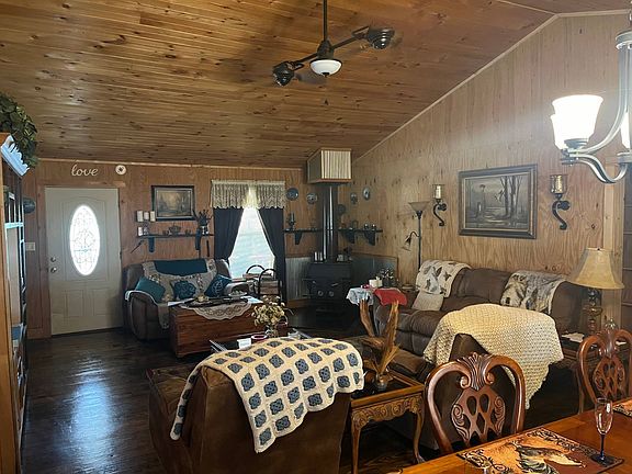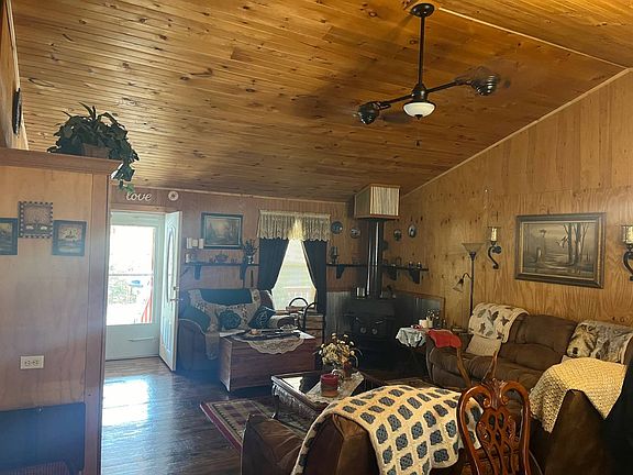Three bedroom 2 1/2 bath 1836 ft.² lots of wood on the inside. It has a screened in back porch with a 16 foot deck and a 50 foot covered porch on front. 9x11 pump house and storage building, with 24x16 shop this home was built in 2009.