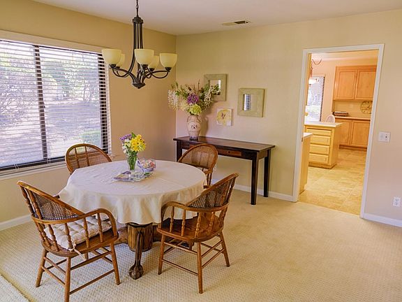 The Villages Golf & Country Club. Single story, 2bed, 2ba, inside laundry, large, eat-in kitchen. Additional dining area, Livingroom w/vaulted ceilings and fireplace. Both with sliding doors to the spacious covered patio and private BBQ area,overlooking the amazing grounds. Views from both bedrooms and sliding door from Master. Loads of closet space. Air conditioning, 1 car garage & 1car carport.Amenities galore from Golf to Bocce ball, Horse stables,tennis, 2 many clubs & organizations 2 mention.Perfect senior community.1 person must be 55 or older