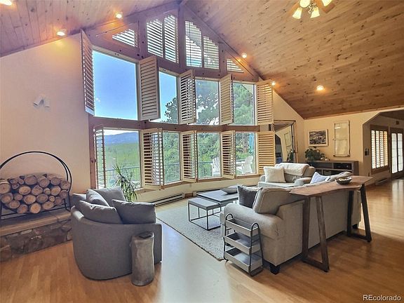 This remarkable home marries modern comforts with the rugged beauty of nature. Perched on 3.3 easily-accessible, mountainside acres, you’ll find an unparalleled escape with panoramic vistas. The heart of this home is its enormous kitchen, complete with a Jennair side-by-side refrigerator, granite counters, and abundant cabinet space. The main living area boasts large picture windows that frame the breathtaking views and one of two cozy wood-burning fireplaces. The primary suite is a sanctuary, exquisitely renovated and featuring in-floor radiant heat, a gas fireplace, and a private loft. The 5-piece bath offers a spa-like escape with a soaking tub and a 2-person shower while the enormous boutique walk-in closet connects seamlessly to the laundry room for added convenience. Two spacious lofts offer versatile options, whether you need an office space or a guest room. The lower level features a gym area, a room perfect for entertainment and gatherings, two additional bedrooms and a second wood-burning fireplace. This remarkable mountain home includes a gazebo high atop the property, a dog run, a 12x20 lofted workshop, as well as engineered plans for an additional 2-car garage addition. With direct access to miles of trails through the national forest, including Maxwell Falls Trail, nature enthusiasts will find paradise here. This home is EV-ready and comes with the peace of mind of fire-resistant steel roof and siding, a generator-ready back-up power transfer switch, and well-maintained, hard-surface roads that guarantee year-round access. The abundance of open, finished square footage invites endless possibilities for adding bedrooms, bathrooms, offices, or any other desired space—let your creativity soar, as this property even holds potential as an Airbnb or short-term rental investment. A short 10-minute drive to shopping in Conifer and 30 minutes to the Denver suburbs, this mountain home offers the perfect balance of seclusion and convenience.