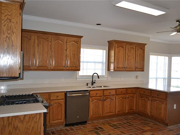 This beautifully maintained brick home in popular Carrington has so many extras! It is a 4 bedroom and 2.5 bathrooms one story home. The extra large kitchen will wow you with BRAND NEW quartz counter tops, stainless steel appliances, under mount sink and bronze faucet! Gorgeous! There is a breakfast bar as well as a large space for the eat-in kitchen plus a formal dining room. The spacious living room has soaring ceilings, tons of natural light and beautiful built-ins on either side of the gas log fireplace. The master bathroom has a garden tub, separate stand-up shower and his & hers sinks and closets. The entire house has all new interior paint as well. The back patio is partially covered and leads to a great fenced backyard. On top of all that is an attached THREE car garage! You don't want to miss this one!