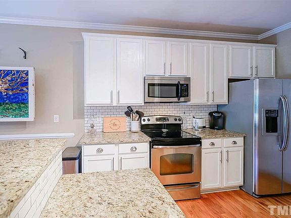 If a trophy was being given out this home would take it!! Absolutely irresistibly charming abode is hot on the market! Move-in ready with all the character and upgrades one desires. STAINLESS appliances, WOOD floors, GRANITE counters, SUBWAY backsplash, & more!! Spend Summer days lounging or entertaining on the patio enjoying the fenced backyard and corner lot. Popular location of Raleigh close to RDU, 540, shopping, Brier Creek, dining, and complete with neighborhood SWIMMING POOL!