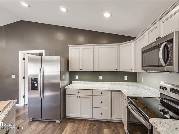 Immerse yourself in tranquility and privacy with this hidden gem, nestled just 8.4 miles from downtown Palmer. Set against a backdrop of natural beauty, this home offers the best of both worlds - the peace of a rural retreat, an easy 54 mins. to JBER.All appliances are in, including new washer and dryer. Kitchen has under cabinet lighting. Roomy utility room with folding table & cabinet to store cleaning supplies Keep tools & hardware out of site & stored in the generous sized mechanical room. Chester J is a private road & maintained by current owners. Yarrow is maintained by MSB. Construction was started in 2000 and just completed 3/10/2023. Downstairs closet doors are ordered. This home is beautiful, spacious, and ready to move in.