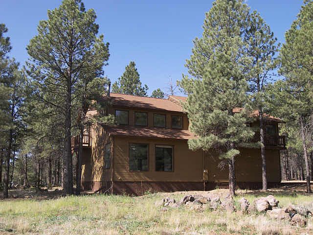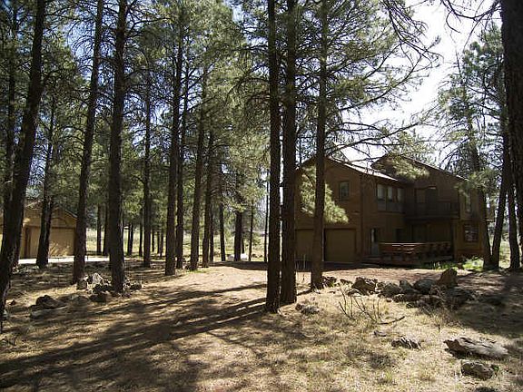 Parcel #25 is a 2-acre rectangular shaped parcel with an existing 2-story home. The home boasts of tongue and groove ceilings, skylights, new gourmet kitchen with granite countertops, wood stove and balconies off every bedroom. There is also an attached 2-car garage with an additional oversized 3-car detached garage. The property is located within Ranch at the Peaks and is perfectly situated within old growth Ponderosa Pines to capture San Francisco Peak views with clerestory windows. Ranch at the Peaks is in close proximity to downtown Flagstaff & includes underground utilities, deep water well and paved roads. Priced to sell! This home has not been occupied by seller and it will be sold in as is condition.