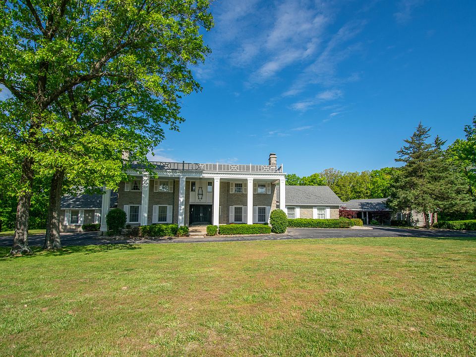 Pull into the circle drive & feast your eyes on this magnificent mansion resting on 34 beautiful acres. The attention to detail is surreal from the curved porte-cochere & mesmerizing front door to the rich woodwork & unmatched character inside. Designed to resemble an English Manor, this 10,000sqft estate is meant to be shared w/ 7 bdrms & baths in the main house plus an entire wing dedicated to 2 living quarters for guests. The grand foyer welcomes w/ its dramatic 3 story staircase accentuated by a fountain. Indulge in conversations with friends in the sprawling living rm w/ an exquisite carved fireplace like no other. Take advantage of abundant cabinets & counterspace in the cheerful kitchen that opens to a comfortable breakfast rm & den w/ an amazing curved library.