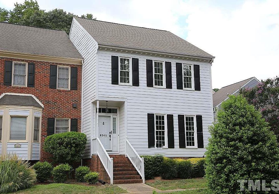 Ultimate North Raleigh location minutes to areas best shopping, restaurants, schools, and short commute to downtown or RTP. Beautiful, quiet established neighborhood. Large deck overlooking wooded back yard; private views. End unit townhome with open flowing floor plan -- fills with natural light. Master suite with private bath plus two guest rooms. Large kitchen with breakfast room. Formal dining room open to spacious family room with masonry fireplace. Low dues include pool and tennis.