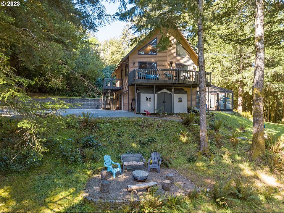 Excellent location 1 row back from Siltcoos Lake. Large trees and privacy on this 1.17 acre parcel with views of the lake. Original, sturdy, chalet construction; interior renovated in 2018. Great neighborhood! RV parking. Sold Sep 2020 $446,700