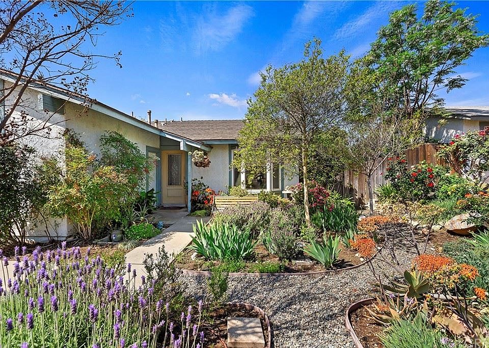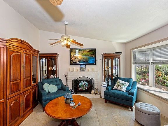 This beautiful updated and upgraded home greets you with mature California drought resistant landscaping, front and back. Home is very comfortable and easy to live in. Upgraded windows and Italian tile floors throughout. Living room boasts wood burning fireplace and large, padded bay window. Gorgeous open kitchen with updated cabinets with gleaming granite counters and convenient island, recessed lighting and new kitchen sink. Notice all the windows in the kitchen/dining room. Plenty of northern sunlight to brighten your day and excellent A/C that keeps your house cool. Glass door between living room and kitchen. Both bathrooms have also been upgraded. Not sure if both are granite, but are granite like and beautiful. Also with newer cabinets, toilets and tile surround in tubs. Backyard is also California drought resistant and provides several fruit trees. POSSIBLE RV parking on both sides, buyer/agent to verify. Upgraded, insulated garage door. Drip irrigation system.