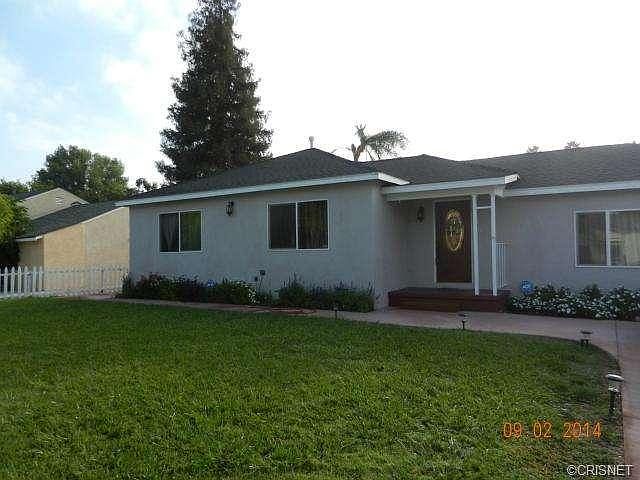 This spacious single story 3 bedroom, 2 bath home with two car garage is located in beautiful Winnetka. Features include entry with travertine flooring. Step down living room with a fireplace, travertine flooring. Adjoining elegant formal dining room that can seat 12 with travertine flooring and beautiful chandelier. Gourmet cook's kitchen with beautiful cabinetry, granite counter tops, separate stove with microwave, dishwashers, refrigerator/ freezer. Located on the main floor step down to a large master bedroom, sitting area, spacious bathroom with s shower and spectacular walk-in closet with plenty of built-ins. On the main floor boasts two other bedrooms with separate beautiful bathroom. Backyard features large swimming pool, separate sitting area, large grassy area and very private. The garage is finished and is currently being used as a game room. Truly a must see.