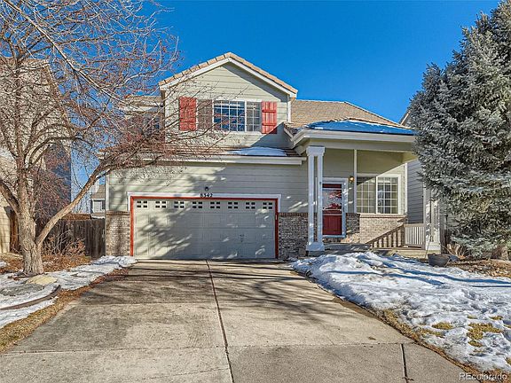 Picturesque two story home located conveniently to Chatfield, Hwys 470 and 121, retail, restaurants, and more! Step inside and be impressed by this beautiful well maintained home in a very desirable neighborhood. The soaring ceilings and natural light pouring in is warm and inviting. The main level features a living room with vaulted ceilings, a spacious open floor plan with kitchen/dining area, and a cozy family room. The sliding doors lead out to the beautiful large 2-level stamped patio. The private backyard is easy to maintain with low maintenance xeriscaping!. The bedrooms are located upstairs and the primary suite features an en-suite bath and a large closet! The loft has floor to ceiling built-in shelves and could easily be converted to 3rd bedroom or would make a great office space. Recent renovations include: new wood laminate flooring on the main level (2018) and new HVAC (2022). Welcome home! Click the Virtual Tour link to view the 3D walkthrough.