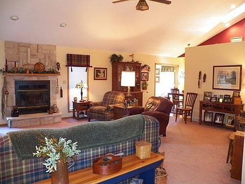 Country Home Estates Quality built Cedar Ranch has 3 bedrooms, 2 bathrooms, 1,742 SF, French Doors to ceramic tiled 4-Season Room with gas fireplace and Great Room with feaux-stone gas fireplace.