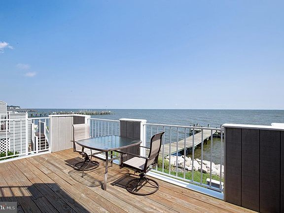 DIRECT CHESAPEAKE BAY WATERFRONT!! SMALL COMMUNITY OF 12 TOWNHOUSES WITH A PRIVATE COMMUNITY PIER. WATCH THE SUNRISE EACH MORNING ON YOUR OWN DECK, OR FROM THE BALCONY OFF THE MASTER BEDROOM. MULTIPLE DECKS AND BALCONIES FRONT AND REAR. WRAP AROUND DECK FROM THE WATERFRONT TO THE KITCHEN. FRESHLY PAINTED AND SUPER CLEAN, ROOF REPLACED IN 2016. NEW KITCHEN AND MASTER BATH FLOORING. MASTER BEDROOM WITH SUPER BATH AND SPIRAL STAIRS TO GENEROUS LOFT AREA. OVERSIZE GARAGE WITH AN ADDITIONAL FINISHED ROOM THAT HAS A SLIDING DOOR TO THE WATER SIDE. GREAT PRICE, DON'T HESITATE!! FLOOD INSURANCE IS ASSUMABLE, APPROX. $1200. PER YEAR FOR A PART TIME RESIDENCE, APPROX. $200. PER YEAR LESS FOR A FULL TIME OCCUPANT. ELEVATION CERTIFICATE AND SURVEY AVAILABLE.