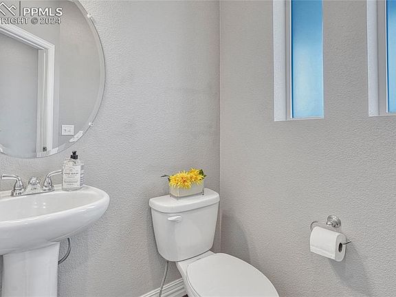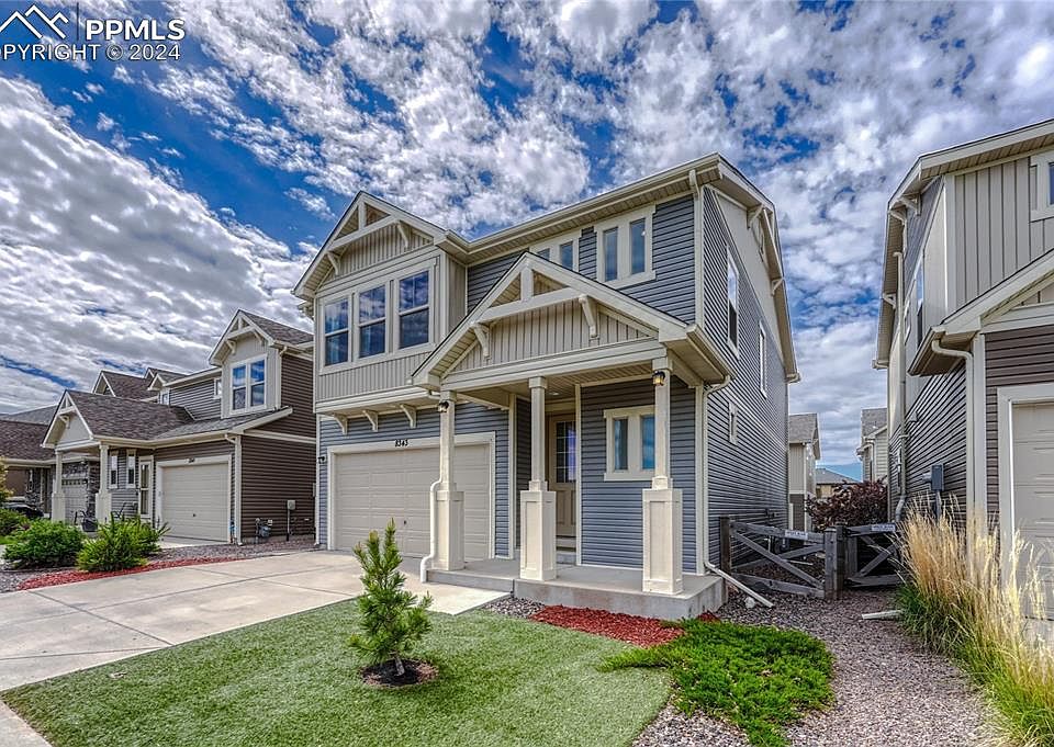 Welcome Home! Located in the well-known Banning Lewis Ranch community, this three bed, three bath, two-story home features stunning upgrades throughout both the interior and exterior! This like new home boasts: new solar panels, new carpet, new main-level flooring, new garage flooring, new window treatments, new kitchen pendant lighting, covered front porch, fully fenced backyard, air conditioning, granite kitchen countertops, upgraded appliances (inclusive of a stainless steel undermount kitchen sink, tile/granite backsplash, a granite kitchen island, brushed nickel hardware, and a walk-in pantry), two-panel doors, upgraded primary bathroom, walk-in primary closet, an upstairs loft, an unfinished basement (just awaiting your personal design), and the list goes on and on! Walking into the front door, you are instantly greeted with a wide entryway leading into the living room/dining/kitchen. Come enjoy the open-concept, upgraded kitchen, the eat-in dining (with a walkout to the backyard), the expansive family room, the well-appointed powder bathroom, and access to the two-car garage. Make your way upstairs to the loft (which could be converted into a fourth bedroom), the primary suite (featuring room for a sitting area/desk/workout area, an upgraded en suite, and a walk-in closet). Finishing out the upstairs you will find two more bedrooms, a full bathroom, and the laundry room. Head downstairs to the 848 square foot unfinished basement that is a blank slate providing even more livable square footage/room for growth. Located directly across the street from Climbers Park, steps away from the community amenities (such as the pool, fitness center, tennis courts, dog parks, parks, trails, splash pad, school, etc), and just minutes away from our military installations, award winning schools, parks, trails, shopping, dining, entertainment, and the like, this home will not last and is not to be missed, so schedule your showing today!