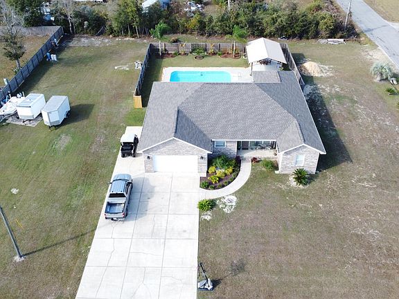 Amazing All Brick custom build on nearly an acre! Your outdoor oasis awaits! Pool and custom pole barn for entertaining, beautiful landscaping. A must see! Enter into an open concept floor plan offering a cathedral ceiling in living space and 9ft ceilings everywhere else. Recessed lighting in main rooms and porcelain tile throughout This home is bright and airy with plenty of natural light. Spacious kitchen features custom cabinets and plenty of counterspace. Stainless steel appliances. Very nice half bath off the main space with shiplap and granite countertops. French doors off the living room leads to a covered back patio overlooking the pool. Master suite features French doors to the pool/patio, huge walk-in closet, double vanities with granite, and stand-up shower. 2 additional guest rooms that are nice sized and guest bath is spacious with granite countertops and plenty of storage. Huge Bonus room that was used as two bedrooms, would also be perfect for a game room or media room. Has hot/cold tap and drain installed when constructed to add a wet bar. It also has french doors that lead to covered back patio. The outdoor space of this home is absolutely perfect for entertaining family and friends, from pool parties to outdoor dining it has the space to hold large groups. Beautiful greenery including satsuma, blueberry, and banana trees. Two car garage and plenty of parking for RVs, boats, or guests. Garage was plumbed for a sink when constructed. New roof after the storm with full ice/water shield. Stood tall to Michael with only minimal shingle loss. Transfer switch for generator. Outdoor shower. Paradigm surround speakers in wall and ceiling in living room. The bonus room/4th is also wired for ceiling speakers. Laundry room has direct entrance from garage or home and has built in cabinets. This home has been cared for and maintained with an open wallet and pride of ownership shows throughout. On well and septic so no water bill. No HOA. Great proximity, just 15 minutes to 23rd St shopping/restaurants and Panama City Mall. Only 25 minutes to Tyndall Air Force Base and 30 minutes to Panama City Beach. Nice and quiet without neighbors 6 feet away.