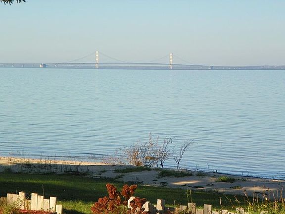 SPECTACULAR PICTURE PERFECT VIEWS of the Mackinac Bridge, Mackinaw Island, and the Great Lakes shipping channel. This well built year round home features 3 bedrooms, 2 baths, an open floor plan, cozy family room with a fireplace and Berber carpet. Updated Kitchen & Master Bathroom. Other features include tongue & grove ceilings, hardwood floors, a maintenance free exterior, lakeside deck and all on a private setting and just minutes away from Historic Mackinaw City. Call today!