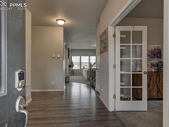 Assumable Loan Available! Stetson Hills Timeless Beauty! Don’t miss the chance to make this stunning 3-bedroom, 2.5-bathroom home with a 3-car tandem garage your own! This spacious floorplan includes an open-concept kitchen, dining area, and family room—perfect for gatherings and everyday living—as well as a dedicated home office ideal for remote work or study. It can also function as a non-conforming Main Level Bedroom! This popular floorplan was the builder’s top seller—and now it’s available for you! Step outside to enjoy green space and scenic trails behind the home, or take in the beautiful mountain views from the upstairs front windows. The unfinished basement offers flexible potential—use it as a home gym, or finish it to add additional bedrooms and living space tailored to your needs. Located in a vibrant neighborhood near parks, schools, shopping, and military installations, this community offers a lifestyle you’ll love. Schedule your showing today and make this dream home your reality!