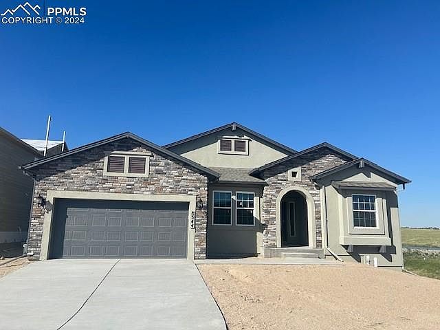 Ready in November. Paradise ranch plan in Homestead at Sterling Ranch. Stucco and stone style exterior. 4 bedroom, 3 bath, formal dining room, main level study, 2 car garage. Gourmet layout kitchen features Shaker-style maple cabinets in a charcoal finish, elegant Bianco Antico granite countertops, pantry, and stainless steel appliances including a gas cooktop with vented hood and refrigerator. Walk through the comfortably sized main level master bedroom into the master bath that includes a shower with seat, soaking tub, double sinks and a walk-in closet. The garage includes a 4' forward extension to accommodate longer vehicles or provide valuable storage. The finished basement includes rec room, 2 bedrooms, a full bath and huge unfinished storage space A portion of the unfinished storage space can be made into an additional bedroom. Home comes equipped with a smart home package, radon mitigation system and air conditioning. Exterior living space includes a covered patio conveniently accessed from the kitchen nook. Seller incentives available. Home is located in a covenant protected community.