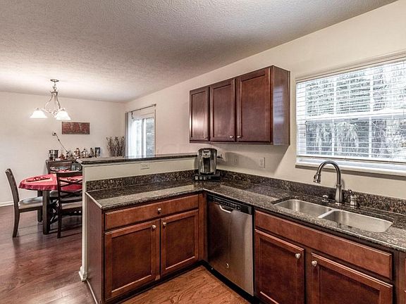 This one owner condo in popular Traditions at Highbluffs is less than 4 years old. The Seller put in many upgrades at purchase. Dark laminate flooring contrasts well w/white trim & 4 panel doors. Beautiful granite kitchen includes a bar area, SS appliances, pantry & lots of cabinets. Upstairs you'll find neutral carpet and paint. Lg Master suite w/WIC, ceiling fan, dbl vanity bath w/ceramic tile & Corian. 2nd bedroom also has vaulted ceiling & ceiling fan. LL is finished w/granite gas FP & a 1/2 bath. Concrete patio, small privacy fence and trees line back of property. Community clubhouse, fitness, pond w/walk path. Super convenient location!