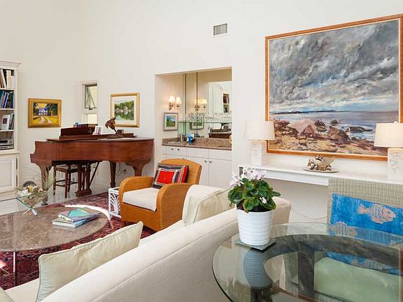 Baytree villa, cathedral ceilings in living and master, clerestory windows; French doors open to brick courtyard with heated pool. New baths, granite in the kitchen. 2BR/2BA plus enclosed air conditioned Cabana. Tiled throughout, excellent condition. Short walk to the Beach, Clubhouse, 4 pools & 4 tennis courts. Sizes are approx/subj to error.
