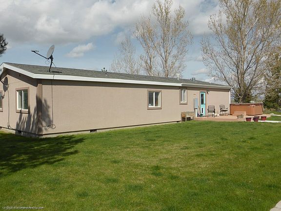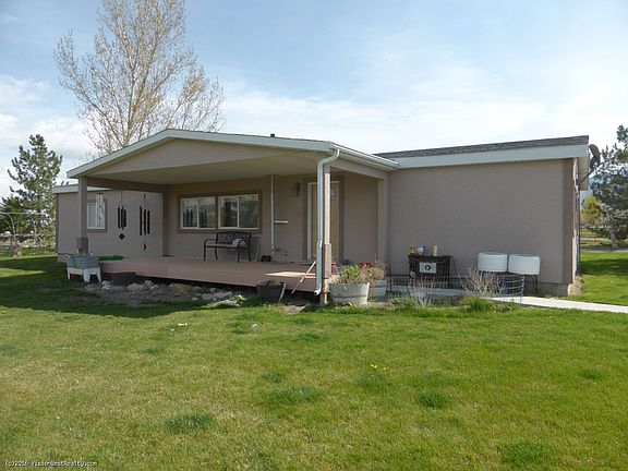 This property is waiting to be someone's small ranchette. The home sits back from the road for added privacy and has mature landscaping on auto sprinklers and drip. The home is stucco and has a new covered deck off the front. Vaulted ceilings, fresh paint and good sized bedrooms and closets. There are two 30'x30' detached garages on the property that are completely finished inside with storage cabinets, work benches & more! Also included is a 12'x18' "bunkhouse" with a covered porch that sits behind the home for guests, or could be a man-cave or craft room. It is completely finished with heat, cooler & fireplace. There is a large shed/tack room in the round arena with water & electricity. There is also a conex trailer for extra storage. Arena panels and the hot tub will remain.Call to schedule a showing, there is so much more to see!