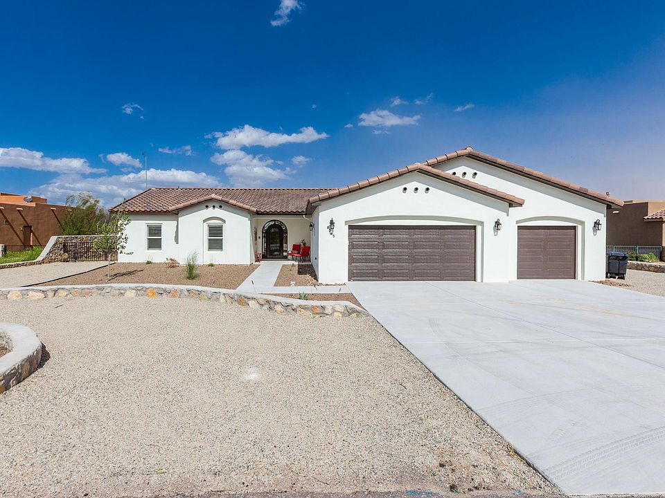 This south valley beauty is a spanish style custom built home. Located in the beautiful neighborhood of Snow Rd Estates. Custom Features include pitched tile roof, hunter plantation shutters throughout, living room double sliding doors w/ room darkening blinds, ornamental wrought iron front door w/ reflective windows and built in screen. Kitchen is elegantly appointed w/ hand selected granite countertops, knotty alder cabinets w/ soft close drawers & stainless steel appliances . A spacious master bedroom en-suite is a retreat all it's own w/ an oversized garden tub & separate shower equipped w/ double showers heads one of which being a rain head. Do you work from Home? This home offers an additional office space. Listen to your favorite music throughout the home & patio spaces w/ a built in audio system.