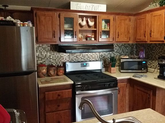 1999 Skyline Mobile home, 16 x 80. 3 bedrooms, 2 bath, kitchen recently remodeled, utility room, dining area and desk in kitchen, spacious living room, large master bedroom with walk-in closet. Big master bath with separate shower and tub. 2nd and 3rd bedrooms are roomy, as in the 2nd bath. Newer gas range and dishwasher are included. Brand new charcoal gray metal roof, new ceramic bathroom sink & Kohler bathroom faucet, & new living room ceiling fan included with purchase as well. Must be moved at buyers expense, or can be left on lot with lot owners approval. Current lot rent is $130/month, includes water & trash, and tornado shelter.