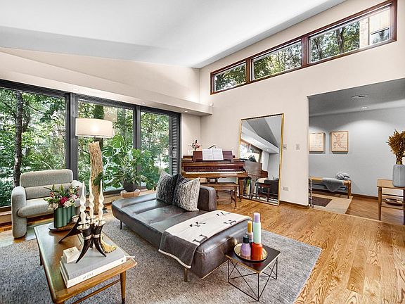 Imagine living in this Frank Lloyd Wright inspired home,with SWEEPING HARDWOOD, TOWERING WINDOWS, and SOARING CEILINGS framing NATURE at every turn. Impress guests in your LIVING and DINING room, host GAMEDAYS in your GREAT ROOM with FIREPLACE, and enjoy REAL FACE TIME in your HIP CONVERSATION PIT. The kitchen and breakfast nook open to an amazing DECK and YARD. A MAIN FLOOR OFFICE/BEDROOM is hidden away near a 3/4 bath, and a MUDROOM leads outside. Take it all in from the 2ND FLOOR OVERLOOK (made safe with plexiglass), and continue to 3 LARGE BEDROOMS (one with a fun loft), 2 baths, and a big LAUNDRY ROOM. Escape to the OWNER'S SUITE, with SITTING ROOM, FIREPLACE, FULL BATH, BALCONY, and night sky views through CLERESTORY WINDOWS. The FINISHED BASEMENT offers play and storage, and the THREE CAR GARAGE has space for all your gear. Built for the COOL AT HEART, this ONE OF A KIND, ARCHITECTRURAL GEM is close to 80/94, the future South Shore stop, and NWI's highest ranked STEM schools.