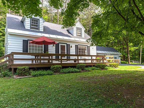 When it comes to the quintessential American home, very few architectural styles have been as popular as the classic Cape Cod. This 1,819 sq. ft., 4 bedroom, 1 bath, mid-century home is the epitome of Cape Cod design with its efficiency, character and symmetry. Originally designed to protect against harsh winters with its steep roofline to easily shed snow, its shutters and multi paned windows to protect from northern winds, the Cape style is as beautiful as it is efficient. Built in 1950, 8345 Old Poland Road sits perpendicular to the road to take advantage of the home's gorgeous 2.3 acre lot filled with extraordinarily tall maples and majestic pines. The feeling as your approach the home from the large driveway is that of privacy and serenity. Its pristine white paint, multi-paned windows with black shutters and two car garage are an inviting sight nestled against a backdrop of richly-hued evergreens. The loving care taken to update this home while retaining its alluring Cape design is obvious, even from the exterior, with its full-length front deck with border landscaping and the recently updated (6 years old) roof with ice guard on both the house and garage. Just off the kitchen, is an inviting family room with tongue-and-groove pine walls and ceiling. With its berber carpeting and access to both the garage and back yard, one can just imagine snuggled up in this room on a cold winter's night with a good book and a hot cup of coffee. Down the hall from the dining area is a nicely appointed neutral-colored full bath with ceramic tiled floor and tiles extending half way up the walls. The bathroom window adds character and light to the room giving it a roomy feeling. The upstairs of this home has three light-filled, spacious bedrooms.