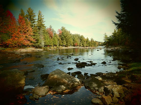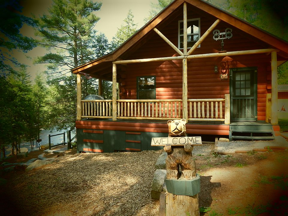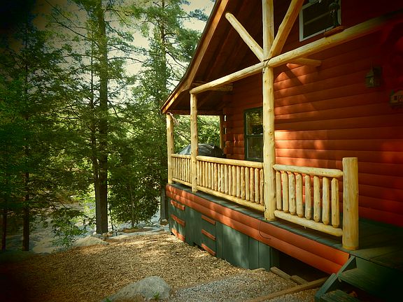 Oh My Gosh ! Own this is an awesome cabin on Oswegatchie River. Just the drive in on the private gated road is spectacular along the winding road through hardwood forest and mature plantation pine, truly gives you that Adirondack feel. Then the custom built cabin and spectacular site is one of a kind. This is one of the best waterfront properties in Lewis County. With the 3.47 acres and 274 feet on the river, along with mature and towering Pines and Forest adds to the beauty of this property. Relax and enjoy yourself sitting on the porches overlooking the pristine 'Oswegatchie River'. Go swimming, rock hoping, and have a cool beverage while soaking in the many 'pools' in the Oswegatchie River. The River is 150' wide and has a rocky bottom with area of gentle rapids, rock outcrops, and pools. Upstream 1/4 mile is an area where you can launch a canoe easily and have many miles of canoeing and kayaking on the River. Bring your boat and launch it at a state boat launch three miles away at the very scenic Lake Bonaparte. Enjoy a romantic evening at the outdoor fire pit or, on cooler nights, stoke up the glass-front woodstove. The cabin is absolutely charming, finished with all knotty pine inside, featuring a loft area, open living and kitchen area, half round log staircase and steps, and round log railings and post throughout cabin and porch areas. There is a Queen bed in lower bedroom, 1 full bed and 2 single beds in Loft area. The cabin is powered by new upgraded solar power with unlimited power. New in 2016 is Satellite TV, and WIFI. The cabin site is located on a small point with a 180 degree view of the River. Majestic white pines along the river bank add to the beauty of this site. The cabin is accessed by a private gated road shared by four other camp owners. Cabin site is very private. There is an easy walk approach to the river shoreline. Swimming areas with flat rock ledge bottom.The new Firepit and landscaped area on waterfront is appealing and convienant. Cabin has been great vacation rental income and can balance personel use and rental use . Go to to view Vacation Rental Advertisement.