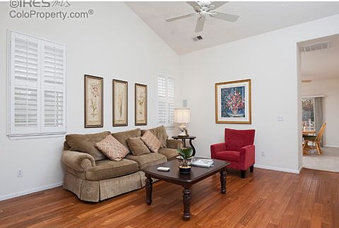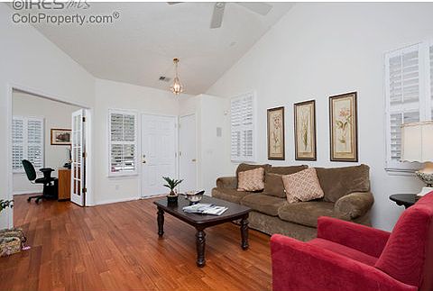 Welcome to lovely Chatfield Bluffs, where you will love the neat and tree-lined streets! This ranch-style home is brimming with charm, with vaulted ceilings and plenty of windows to maximize the open floor plan. Gleaming wood floors and white French shutters are just a few elements which add classic style to this picturesque property. The deck and backyard are perfect for Summer barbeques and the gas fireplace beckons you in during the Winter. *Don't miss the Spaces360 interactive online tour!*