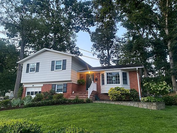 Attractive brick and frame split level home on lovely shaded corner lot with one car garage. Beautiful stone wall surrounds beds; stone path and patio with sitting wall.