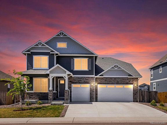 Welcome to this stunning and like-new DR Horton home in the highly sought-after Timberleaf community, featuring the popular Arvada floorplan. With 4 bedrooms, 4 bathrooms, and thoughtfully designed upgrades throughout, this home offers the perfect mix of modern luxury and everyday comfort. It sits on one of the best lots in the neighborhood, backing to open space with over $40K in backyard enhancements—including an extended stamped concrete patio and built-in gas firepit. Inside, you’ll find a bright and open main level with luxury vinyl plank flooring, a private office, and a formal dining or flex room. The gourmet kitchen shines with white cabinetry, quartz countertops, a walk-in pantry, large island, and premium KitchenAid appliances, including a 36” gas cooktop and wall oven/microwave combo. The adjacent dining area opens to the covered patio, and the cozy living room centers around a gas fireplace. A spacious mudroom offers great storage and everyday convenience. Upstairs, the primary suite includes a tray ceiling, a 5-piece bath, and a large walk-in closet. Three more bedrooms—including one with a private en-suite—have easy access to a full bath with dual vanities. A versatile loft and upstairs laundry room complete the second level. The walkout basement offers an exercise space, plenty of storage, and room to grow. Enjoy additional perks like a finished 3-car garage, tankless water heater, smart home features, upgraded lighting, and whole-house blinds. Timberleaf is a wonderful community with nearby parks, trails, and playgrounds. It’s located in the Brighton 27J school district and offers quick access to I-25 and E-470. Whether you’re drawn to mountain views, nearby golf, shopping, or a smooth Denver commute—this home checks all the boxes. Don’t miss your opportunity to make it yours!