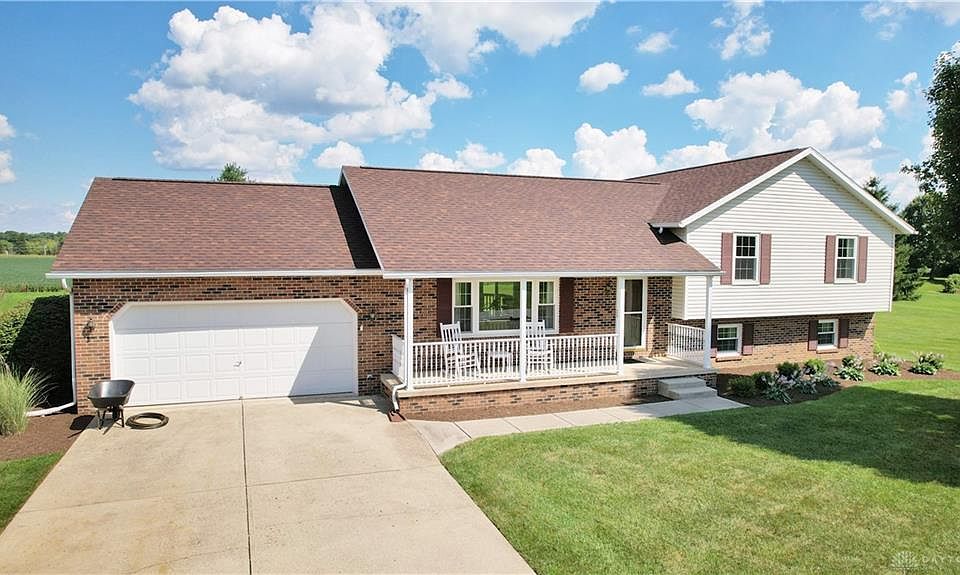 Waynesville 4 bedroom quad-level, 2,800 sq ft on 1.25 acres has been meticulously cared for. New roof 2022, HVAC 2011, newer windows & stunning yard. Covered front porch leads to living room open to dining & kitchen w/ vaulted ceilings. Second floor offers 2 guest rooms, full bath. Primary suite w/ two closets attached bath w/ tub & separate shower. Lower level #1 has huge family room & 4th bedroom (pool table can stay). A few steps down to basement w/ finished area, perfect rec room, office or home gym, additional large storage area w/ laundry. 26x20 garage w/ service door. Private back yard backs up to farm field, deck ready for you to entertain on. Septic pumped & HVAC PM 2022. This home offers space to grow, modify lower-level rooms to work for you, no outlet road w/ low traffic, minutes from Centerville & Bellbrook.
