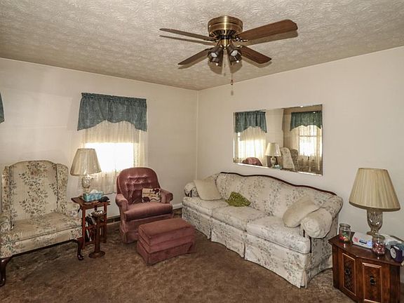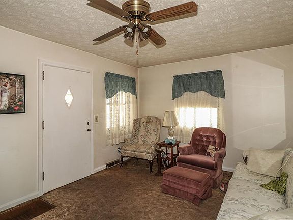 Cozy brick ranch with covered porch provides plenty of shade. Newer roof, HVAC and updated electrical. Large lower level with bar for entertaining. Hardwood flooring beneath carpet in living room.