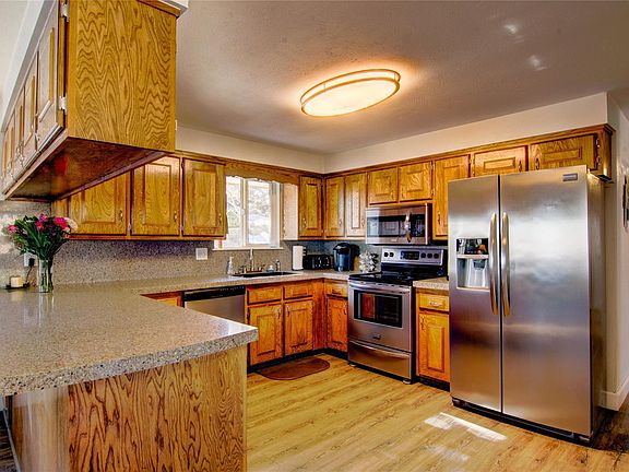 Location, Location, Location! This well-maintained brick ranch is situated in the quiet and beautiful Sky Vista neighborhood. It starts at the curb appeal of the home with a professionally landscaped yard and continues well into the interior features of the home. This fantastic ranch home has a newer roof and gutters, and boasts a beautifully updated kitchen/appliances, 5 spacious bedrooms (2 non-conforming bedrooms in the basement) and 3 bathrooms, living room, and cozy great room with a fireplace on the main level. The basement level includes the 2 non-conforming bedrooms, one bathroom, living area and laundry room. The main open area opens to a beautifully designed and spacious outdoor living deck perfect for entertaining with Denver City light views and views of Pikes Peak. The large 5 car garage is a show stopper for any car/toy enthusiast. This property is absolutely a MUST SEE!