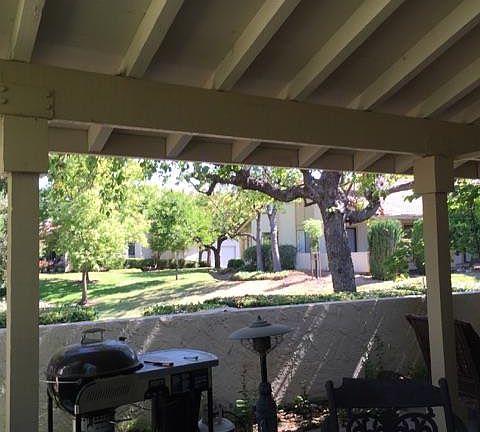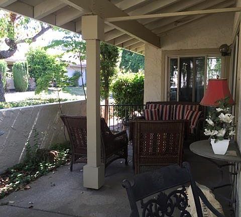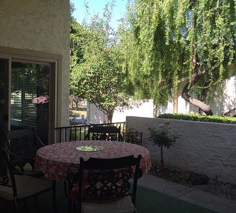 GREAT VALUE*WONDERFUL SERENE SETTING*ONE STORY END UNIT*FEELS LIKE A HOME*DUAL PANED WINDOWS*1497 SQ FT*HIGH CEILING*FIREPLACE*FORMAL DINING*KITCHEN NOOK*LARGE KITCHEN*TILE ENTRY*2 VERY LARGE BEDROOMS*INSIDE LAUNDRY*2 BATH*SURROUNDED BY LUSH TREES AND LANDSCAPING*HEAR THE BABBLING BROOK FROM YOUR PATIO*VILLAGE HERMOSA at THE VILLAGES GOLF & COUNTRY CLUB*ONE PERSON TO BE 55+*AN ACTIVE ADULT COMMUNITY