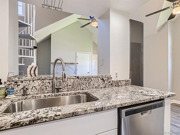 This move-in ready, fully updated, contemporary Condominium in the "Reef" at Marina Pointe has so many interior upgrades including, newer laminate flooring, brand new neutral designer toned paint, newer double pane vinyl windows and more. The fully remodeled kitchen features newer granite countertops, newer cabinets, and beautiful stainless-steel appliances. The luxurious bathroom is also fully remodeled and boasts a marble-topped vanity and jetted Jacuzzi bathtub surrounded by custom tiling, providing a spa-like setting to relax at the end of the day. Custom tiling around the fireplace hearth provides a cozy respite for cold winter nights and the soaring vaulted ceilings add to the open feeling of the home. There are mountain views from the patio and most of the windows, filling the space with an abundance of natural light. Community Amenities include a swimming pool, clubhouse, tennis courts, basketball courts and dog park. Location is amazing too because you can walk or bike ride to Chatfield Lake State Park and being so close to the foothills of the Rocky Mountains, this location has great access to trails and skiing as well as all the culture of the Denver metro area. In addition to the beautiful natural surroundings, there are great restaurants, taverns, stores, coffee shops and public transportation just a few steps away from the front door. Newer AC unit, washer and dryer, water heater and furnace round out the wonderful attributes of this property. All that is left to do is call it your home!
