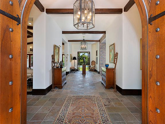 This Gated Spanish Colonial Estate on 2.5+ verdant acres totals 12,114± square feet of living space and is comprised of a 2-bedroom/2.1-bath main residence, separate 2-bedroom/2-bath guest quarters, an attached 2-bay garage and a detached 2-bay garage. All artfully designed using exceptional natural materials to complement its decidedly pastoral setting, with every interior space opening to a charming garden or expansive loggia. The end result is a highly stylized, sophisticated residence with a remarkable sense of tranquility and ease. Complete with a full summer kitchen, 20' x 50' pool, private spa, and ample space for a barn and paddocks, this perfectly scaled bespoke estate reflects the consummate skills of Affiniti Architects' Mitch Kunik and Bloomfield Construction's William Hacy.