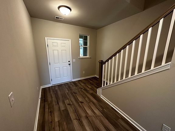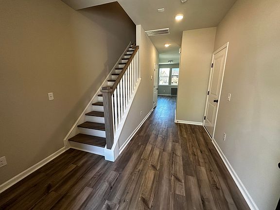 Move in Ready! This end unit townhome comes with a one-car garage and backs up to green space shaded by mosses oaks. This open concept floor plan features a central kitchen that overlooks the main living and dining area with views into the back yard. The kitchen is equipped with stainless steel appliances, black hardware and fixtures, white cabinetry, and quartz island and countertops. The hardwood stairs lead you to find your large owners suite, a walk-in closet, double vanity bathroom and shower. Upstairs also consists of two additional bedrooms and a bathroom. The current list price advertised is inclusive of any/all promotions or incentives the builder is offering via their website, online marketing material, or otherwise.
