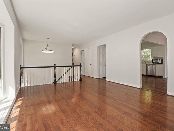 Sought after Riverside Estates! Sunny and bright 5 BR, 2 1/2 BA home featuring dramatic foyer entry opening to large, sun lit living room with floor to ceiling bay window, fabulous eat-in, country kitchen with stainless steel appliances and cherry floors, adjacent open dining with a wall of windows and sliding doors opening to custom deck and huge back yard! Three private bedrooms and two full baths on upper level . Bright lower level features two additional bedrooms , half bath, and large rec room with fireplace! Plus huge lower level work shop and laundry center! Freshly painted throughout with tons of natural sunlight , gleaming hardwood floors, and original archways and detail! Truly a nature lovers paradise with gorgeous and protected back yard views. Your own private oasis away from it all and yet just minutes to GW Parkway, Old Town Alexandria, National airport, and downtown Washington! Wonderful tree lined street and strong community atmosphere with easy access to shopping , schools, parks, bike trails, and recreation!