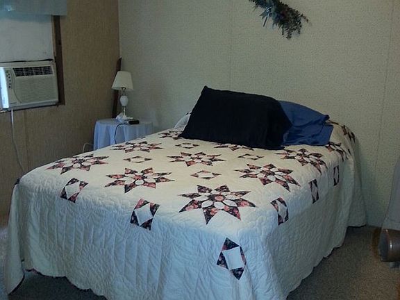 Well maintained 2 bedroom mobile home on wooded 12 acre lot. Mobile is seasonal at this time. Included is washer/dryer, pots and pans, dishes, livingroom furniture, kitchen table and chairs, 2 beds, window air conditioners, space heaters, charcoal smoker, lawn mover, some tools, etc. Secluded for your quiet enjoyment and great hunting.