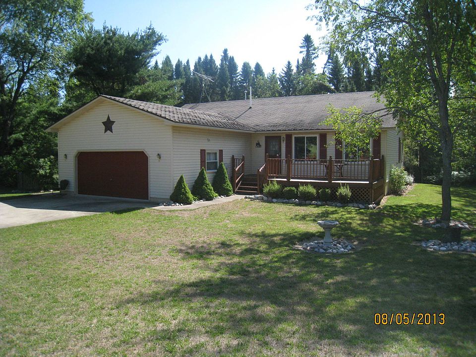 Super clean and well maintained ranch on one of the nicest Lakes of the North streets. 3 bedrooms, 2 baths, main floor utility with laundry tub, main floor master suite, newer Pergo flooring, large living room with vaulted ceilings and views of the 14th fairway. Backyard with firepit and swing, backs up to state land. Full, 12-block basement with block windows for lots of light - and potential! Central air, irrigation and alarm systems, 2 decks, and 2 car attached garage with work bench and cement drive. Lakes of the North amenities. See private comments for more informatio