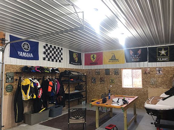 2012 built ranch with finished basement including Media Room and two insulated garage/outbuildings (60x40 and 50x30) and an Amish built cabin built in 2017 all on 40 acres with pavement all the way to the home.