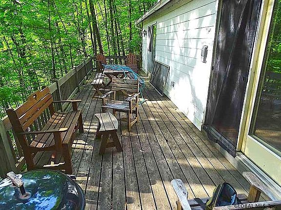 Nestled in the woods above the Silver Bay YMCA Campus, this two bedroom downstairs, 500 square foot loft upstairs offers a comfortable home with views of Lake George. Outside deck spans the entire front of the house and offers a second dining alternative. Siding is known as Color-loc. It consists of Masonite covered with a baked enamel finish.