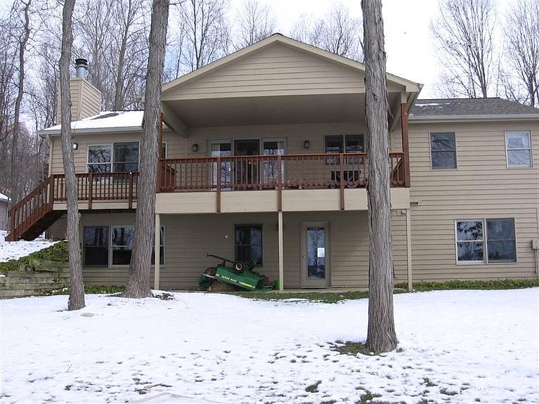 Custom designed ranch to fit this wooded lot with 97 feet of lake frontage on Loch Erin. Original owner has maintained it to the T. 12x24 raised deck enjoys shade and great water views. Roof replaced in 2010 (tearoff).Serious workshop with day light windows in lower level. Also a workshop in the 3 car garage that is fit for the car buff. 1 year home warranty included. Loch Erin is a beautiful 600 acre private lake with several subdivisions and over 650 homes with a population larger than Onsted.